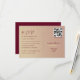 This elegant rose gold and burgundy dual-function wedding RSVP card offers a romantic yet modern design, complete with space for guest names and menu choices. Guests can quickly RSVP using the QR code or opt for the traditional approach by mailing it back as a stamped postcard. Perfect for a stylish wedding that seamlessly blends convenience with classic sophistication.