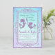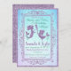 Everything's better under the sea! Our Mermaid invitation is the perfect beginning for creating an under the sea environment with all the sea life and treasures that your special mermaids will find. It features a light blue-green under water background with two purple glitter mermaids and additional purple glitter accents. Sure to please the girls who love glitter!