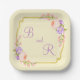 Dual Monogram Flower Frame Casual Wedding Paper Plate