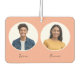 Elevate your car’s style and scent with this reversible, personalised car air freshener. Designed for drivers and their partners, this cool accessory features your own pictures on both the back and the front, in round photo 'frames' with your names elegantly displayed underneath. If you turn to the other side, the drivers have swapped places, so you can simply flip the freshener around to match the driver of the day. One side is peach, the other light green. Perfect for adding an individual touch to your ride while keeping it fresh and stylish.