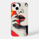 Two women are depicted in a vibrant, pop art style, one in shades of blue and yellow and the other in grayscale with bold red lipstick. The background features a mix of abstract patterns in red and yellow tones.