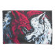 Two hyperrealistic wolves, one crimson, one ivory which mirror the ancient yin-yang, symbolising primal balance, unity in contrast, and wild harmony within a cosmic wilderness.