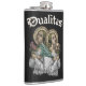 The flask itself is fine. It’s a cheap flask, obviously bought in bulk, however am prepared to overlook that. Given that it is a personalized item, I would have liked to have seen gift boxing instead of the generic packaging. Terrible printing, and/or quality. It’s a cheap, tacky vinyl. It is not cut straight and is also applied in a way that it is overhanging the bottom, causing the glue to catch on items and it will eventually roll and tear, damaging the wrap.