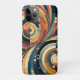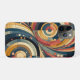 Smaller circles and dots are interspersed throughout the design, adding depth and texture. The interplay between curves and straight lines, along with the use of contrasting colours, embodies the Bauhaus principles of merging functionality with artistic expression.