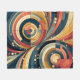 The composition is split into two main sections, each dominated by a large circular form that seems to be in motion. This creates a sense of balance and contrast, reflecting the concept of duality. The colour palette is a harmonious blend of primary colours—red, yellow, and blue—accentuated with shades of beige. These colours are thoughtfully combined to create a vibrant and cohesive look.