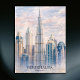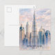 Dubai Burj Khalifa Luxury City Skyline Watercolor Holiday Postcard
