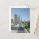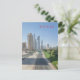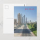 A beautiful view of a busy road and buildings in Dubai printed on a postcard.