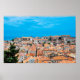 Painting of red rooftops and blue sea from Dubrovnik city wall, Dubrovnik, Croatia. View from above of old town center.