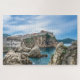 Painting of the fortress walls, rocky coast and blue sea in Dubrovnik, Croatia. Stunning view of Dubrovnik city walls and Dubrovnik old town.