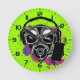 Customisable magneta pink dubstep DJ or graffiti artist gasmask with headphones and sunglases.