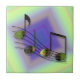 Circuit boards, heart monitors, and flowing vines represent the electronic sounds, slick beats, and pleasing melodies that are mixed together to create the unique blend of sounds found in dubstep, contained within a set of musical notes on a flowing staff. This tile can be framed to create a trivet or placed inside a wooden gift box lid. Tiles without a frame will also fit inside the large gift box to create a matching set.