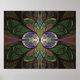 Copyright © 2013, Susan Wallace. Abstract stained glass floral Art Nouveau style hourglass in shades of green, bright rosy pink and purple with chocolate brown and blue highlights. Suitable for poster or framed print; designed to fit standard size frame.