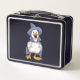 This is a standard metal lunchbox that appears to work just fine. We designed this box ourselves with an uploaded photo and custom text on the front and back. It looks absolutely beautiful except the front of the lunchbox is not centered like it shows in the photo. The print borders don't align with the inset flat part of the box where the preview photo online showed it perfectly centered in there. The back looks nice and centered though.