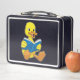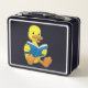 This is a standard metal lunchbox that appears to work just fine. We designed this box ourselves with an uploaded photo and custom text on the front and back. It looks absolutely beautiful except the front of the lunchbox is not centered like it shows in the photo. The print borders don't align with the inset flat part of the box where the preview photo online showed it perfectly centered in there. The back looks nice and centered though.