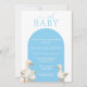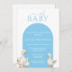 This cute boy Duck Baby Shower Invitation features three sweet ducks and a soft baby blue arch.