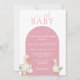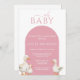 This cute girl Duck Baby Shower Invitation features three sweet ducks and a soft pink arch.