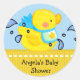 Personalised Sticker for a baby boy or baby girl shower. Cute ducky on a blue and yellow background with the name of mum to be. Use stickers to make colourful baby shower favours. Put them on canisters, boxes, bottles, and votive candle holders to make cool baby shower favours. The can be used on the invitation envelopes and on gift packages to spice them up.
