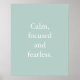 Duck Egg Minimalist Inspirational Quote Poster featuring a simple inspirational quotation, "Calm, focused and fearless." The wording is easy to personalise in the online personalisation template should you wish to change the wording. Should you need to change the size of the text, or if you wish to change the background colour, then please click on the "Customise further" option.