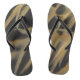 These flip flops features a beautiful close-up photo of a duck's wing feathers. The duck wing was tucked along its side creating the unique overlapped feather design of long ovals and wispy feathers. The earth tone colours of gold and brown will match a variety of outfits.