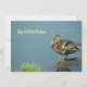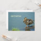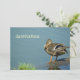 An invitation shows a mallard staying on a lake's shore