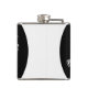 The flask itself is fine. It’s a cheap flask, obviously bought in bulk, however am prepared to overlook that. Given that it is a personalized item, I would have liked to have seen gift boxing instead of the generic packaging. Terrible printing, and/or quality. It’s a cheap, tacky vinyl. It is not cut straight and is also applied in a way that it is overhanging the bottom, causing the glue to catch on items and it will eventually roll and tear, damaging the wrap.