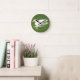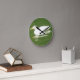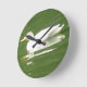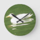 This awesome clock features a photograph of a gorgeous white Aylesbury duck swimming across a duck pond in a park. You can see the ripples on the water and the reflection of the duck.