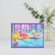 water colour painting of ducks in colourful hues, click customise to personalise these postcards.