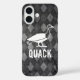 Appealing to the more eccentric individual, this iPhone case features a black and grey grungy argyle print, with a white pictogram of a duck. The customisable white text features the word "QUACK." An enigmatic and inexplicable item!