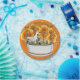 Paper plate with a Duck and floral design on an orange background. Thanks to the Hungryjpeg for some of the elements in the design.