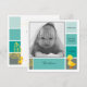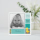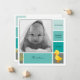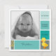 Square birth announcement card, customisable with your baby's photo and info. Square shapes in varying shades of green, and a cute little duckling at the bottom right hand corner. Customisable message on the back.