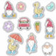Spring Sticker Sheet of ducks, gnomes and flowers.