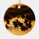This outdoors-nature themed ornament features a photograph of wild ducks, taken just moments after daybreak. In this scene, ducks are silhouetted by a brilliant orange reflection. This photo was This ornament will be of interest to waterfowl hunters, birdwatchers, and nature enthusiasts.