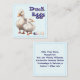 Small, square calling cards with ducks to advertise fresh eggs or other farm goods. The sample wording is "Duck Eggs" on the front. Add more text to the back. Light blue cards with two, white ducks on the front beside four eggs.