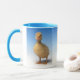 Photograph of cute yellow duckling repeated around mug three times as ducks in a row. Customisable mug colour, style, and size.