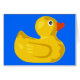 Simple graphic illustration of a cute cartoon yellow duck in blue water note card. This duck is Image available on various gifts and products. Customise and choose your own duck background colour or add text if you need to.