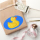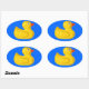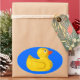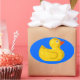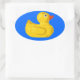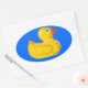 Simple graphic illustration of a cute cartoon yellow duck in blue water on oval sticker. This duck is Image available on various gifts and products. Customise and choose your own duck background colour or add text if you need to.