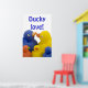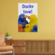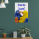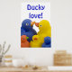 Two rubber ducks in love. A cute poster with a blue and yellow duckies kissing. Three little ducks with their daddy and mummy celebrating their happy family or perhaps a new baby. Cute poster that you can customise with your own text message. Perfect for the one you love to celebrate your anniversary, pregnancy or new baby or babies.