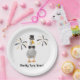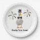 Celebrate the New Year ducky style! This paper plate design features a cute white pekin duck with a top hat, bow tie and fireworks. The message "Ducky New Year!" can be changed to any copy of your choice.