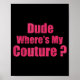 Dude Where's My Couture Funny Sarcastic Saying Wom Poster
