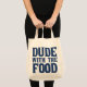 Funny grocery bag for a man with slogan Dude With The Food.
