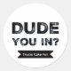 Dude You In? Black typography Boy Birthday Party Classic Round Sticker