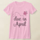 Cute butterfly logo and 'Due In April' design for the mum to be. This t-shirt is NOT maternity styled; it works best for early pregnancy. Please buy size accordingly.