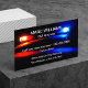 DUI and Criminal Defence Attorney business cards in a bold simple design with police car lights in the background and simple layout with pertinent information displayed.