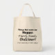 The bag is well made and very strong. Holds a good amount of groceries. I get asked about it all the time. The printing is great and very clear.