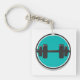 Circular design in black and deep turquoise with dumbbell at centre with 2 weights on each side
