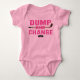 hockey baby girl pink bodysuit. dump and change hockey design, puck and hockey stick.