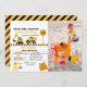 Simple Construction Birthday Dump Truck Invitation for your child's birthday! Featuring construction vehicles equipped with the words "Stop Traffic and Close the Road," Digger, bulldozer. It's simple to personalise simply clicking the personalised button.