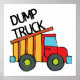 A dump truck of red, blue, green and orange with black text that reads "Dump Truck" on dump truck T-shirts, sweatshirts, football shirts, bibs, bodysuits, bags, buttons, and more! Kids who love big construction vehicles and big trucks will love these dump truck apparel and gifts.