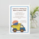 Blue and yellow dumptruck with a cupcake. Customise for any child's birthday. Change text to suit your needs.