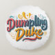 A whimsical and playful design featuring the text "Dumpling Duke" in a hand-drawn, colourful cartoonist font with swirling flourishes. The vibrant colours and playful typography create a sense of fun and excitement.